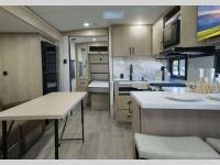 Each of these includes exceptional features, like a 200W roof-mounted solar panel, high-capacity furnace, residential cabinetry, spare tire & carrier, and a universal docking station. Additionally, you'll have accommodating features scattered all throughout the trailer with the upgraded residential furniture in the interior, the solid surface countertops in the kitchen, motion sensor entry LED lighting, and the large panoramic windows in the interior. The aluminum framed fully laminated sidewalls and enclosed underbelly with suspended tanks will hold them up for your adventures on the road!