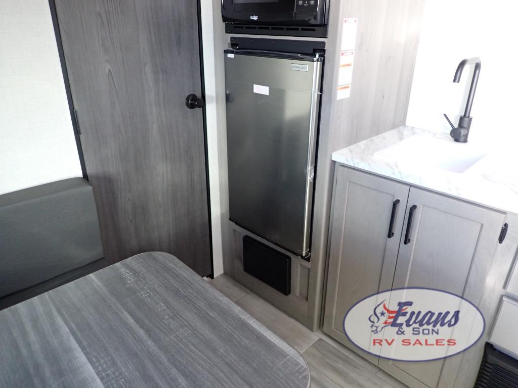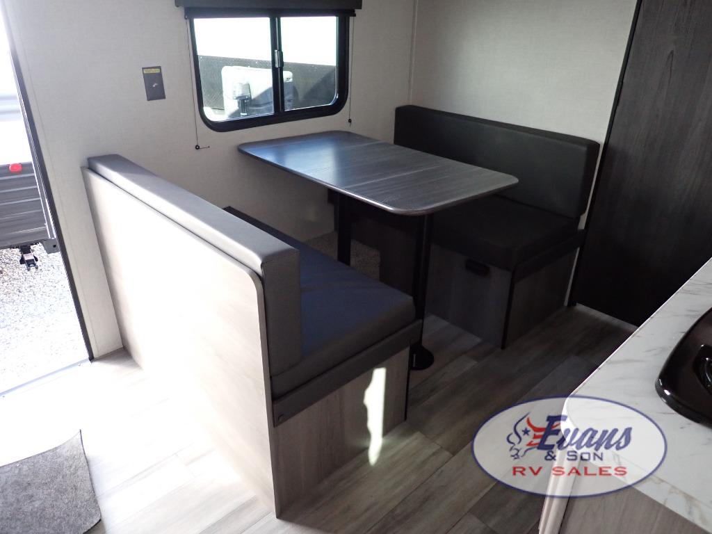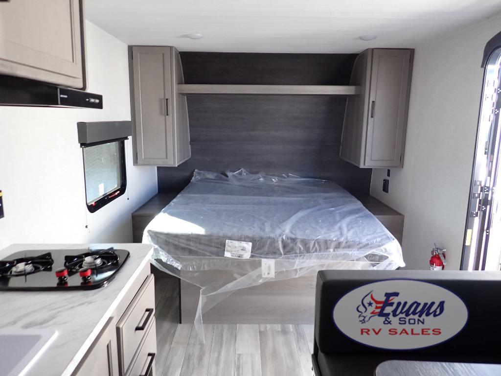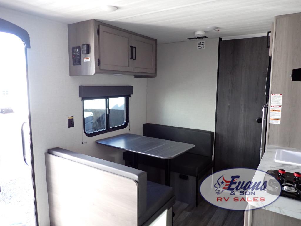 It's time to enjoy the great outdoors with family and friends at the campgrounds you like to meet everyone at! This trailer will allow three to four to camp comfortability with amenities such as a two burner cooktop, a 3.3 cu. ft. refrigerator, and a spacious rear full bathroom. The booth dinette offers a place to dine, read a book and even house an overnight guest. This model also includes a walk-around queen bed that will make your space feel a little more like home!