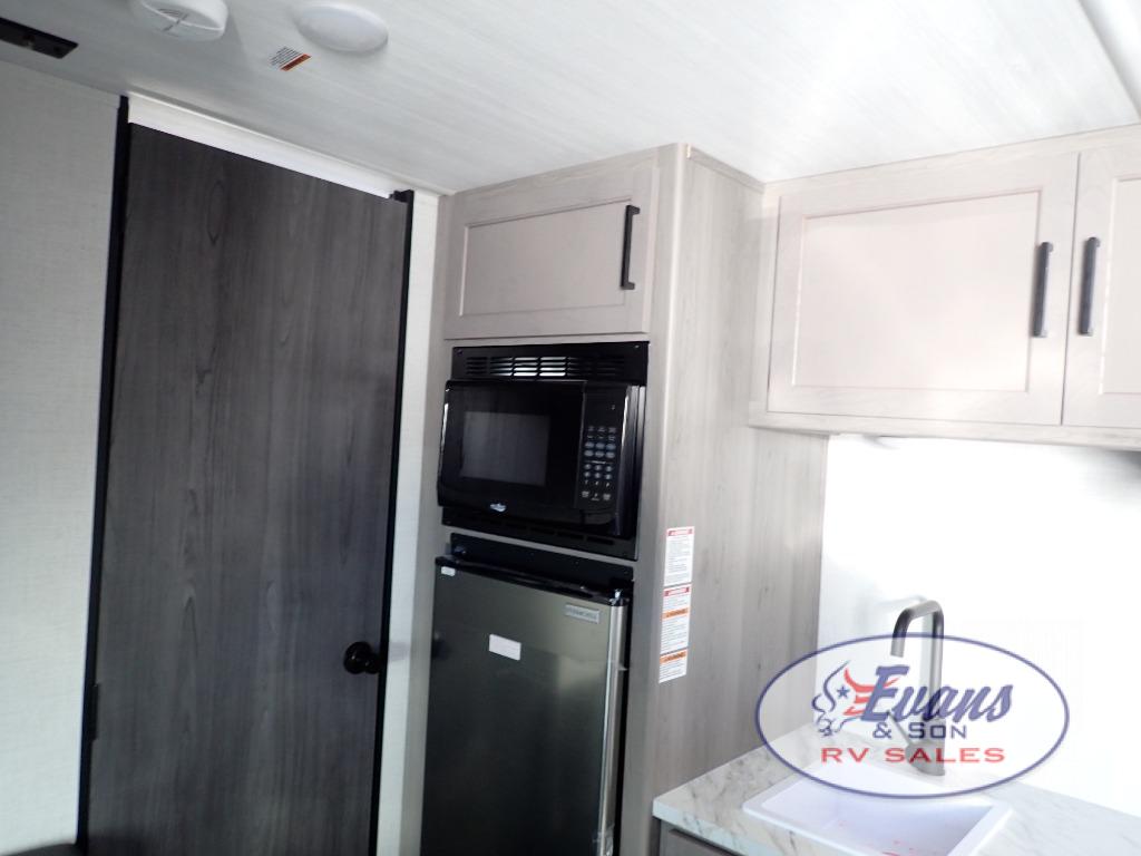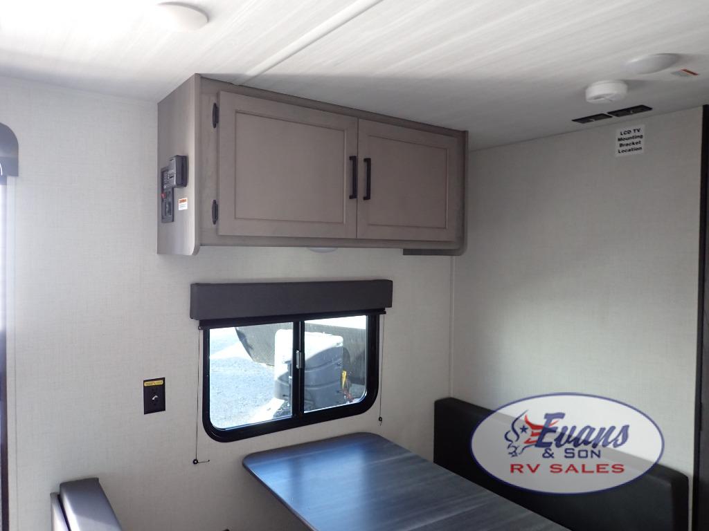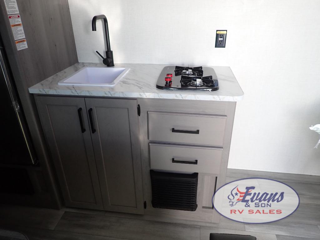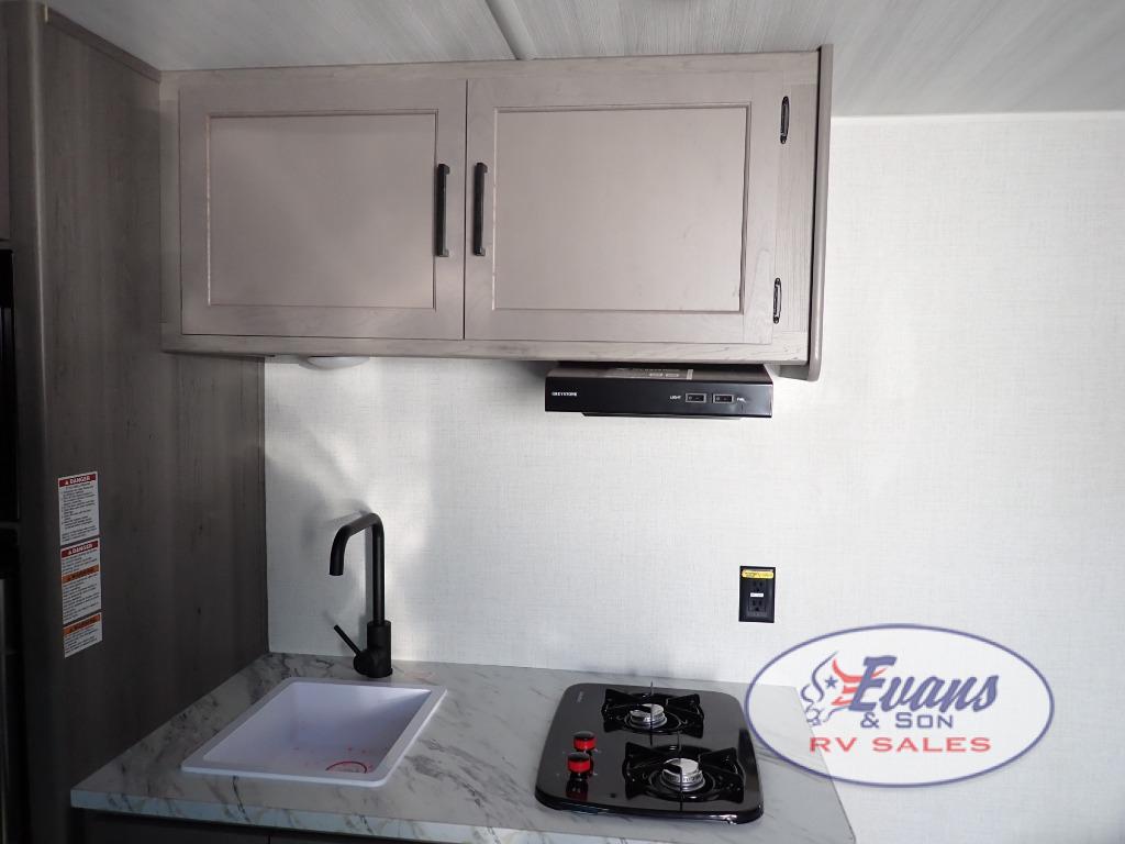 It's time to enjoy the great outdoors with family and friends at the campgrounds you like to meet everyone at! This trailer will allow three to four to camp comfortability with amenities such as a two burner cooktop, a 3.3 cu. ft. refrigerator, and a spacious rear full bathroom. The booth dinette offers a place to dine, read a book and even house an overnight guest. This model also includes a walk-around queen bed that will make your space feel a little more like home!