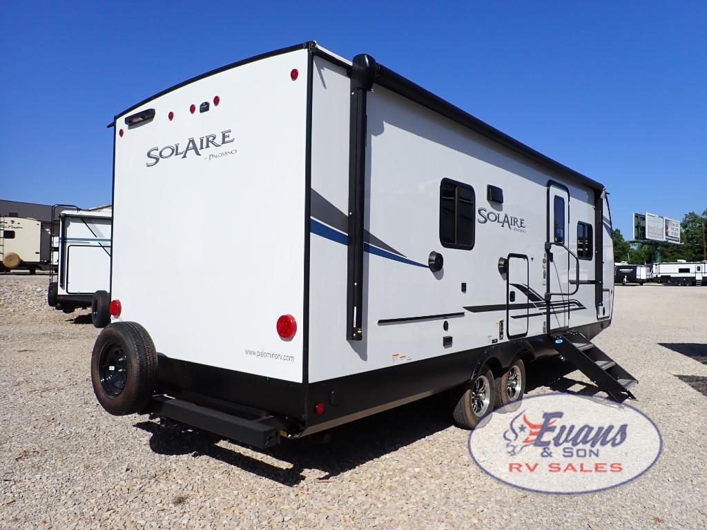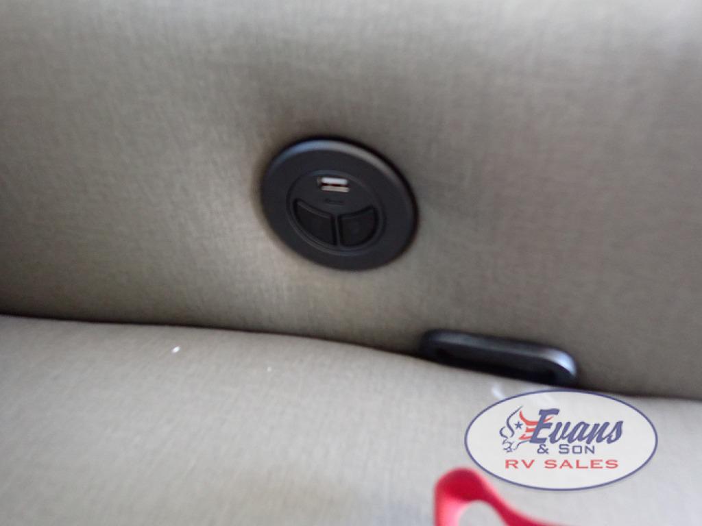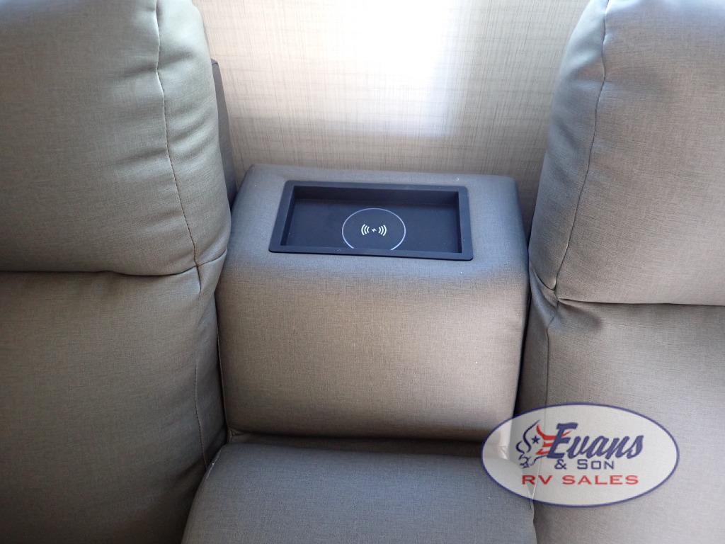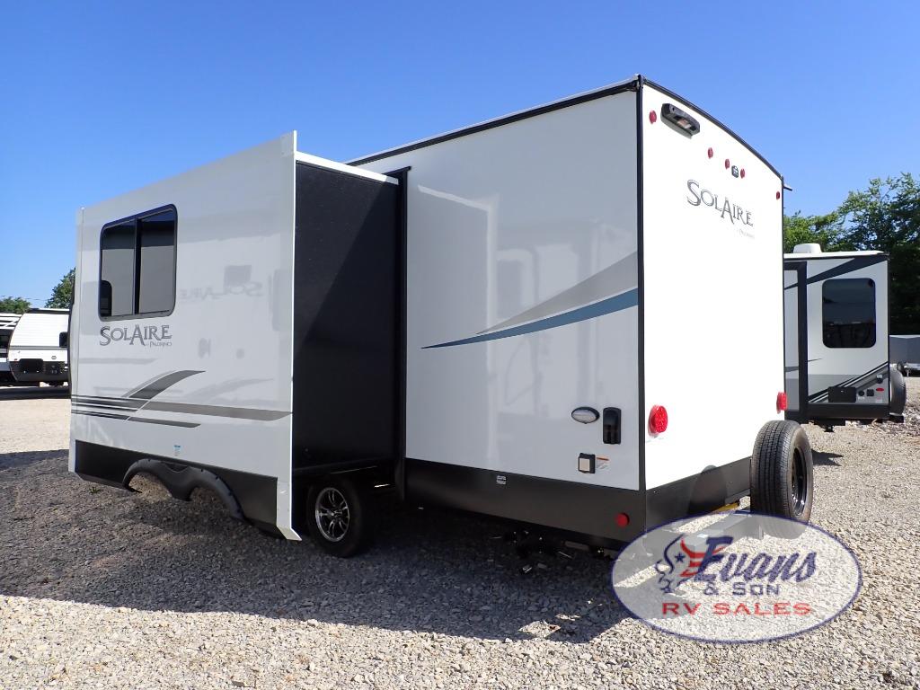 Each SolAire travel trailer or hybrid expandable features a white hi-gloss exterior and Dexter Tor-Flex torsion axles for smooth towing. You will love having a power tongue jack for easy set up, plus slam latch baggage doors with magnets to make unloading easier than ever. There is also a tire pressure monitoring system, a power awning with LED lights, and aluminum wheels included on the exterior. Head inside to find solid surface countertops, roller shades, a Furrion HDMI DVD/Bluetooth/HDMI stereo, and USB ports to keep your electronics charged.