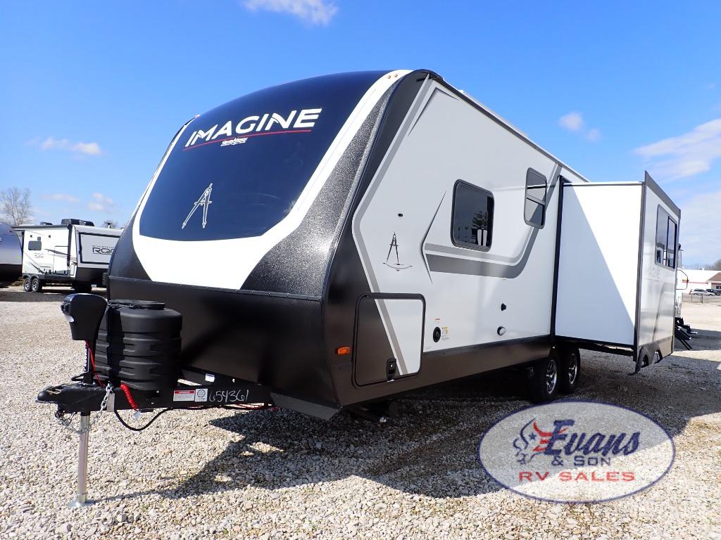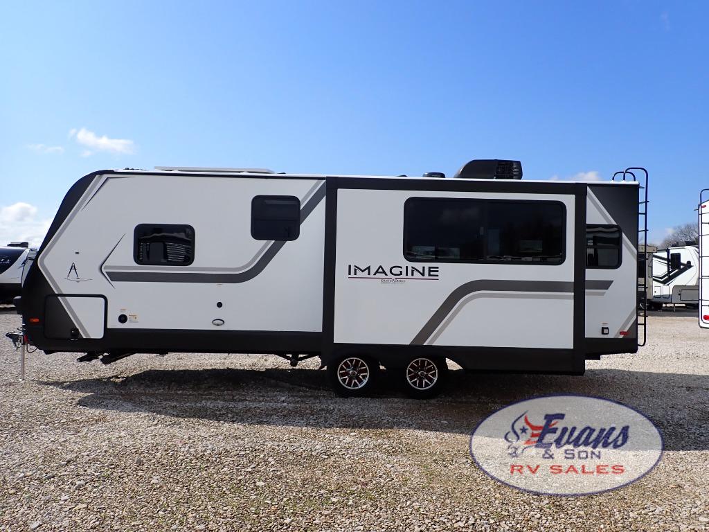You will have an amazing amount of fun in this Imagine travel trailer! There is a tri-fold sofa and U-shaped dinette with removable ottoman that you can relax on while you watch the LED HDTV, and this trailer has two entry doors so that you can come and go as you please. The private bedroom contains the second entry door, so you can quickly head inside to grab a sweatshirt when you need one. While you're outside, you'll have a 21' power awning to protect you, and there is an exterior coax TV hookup, LP quick connect, and spray port to make your camping life easier. The interior walk-through bathroom connects the bedroom to the rest of the trailer, and the kitchen has a countertop extension so that you can chop veggies on extra counter space.