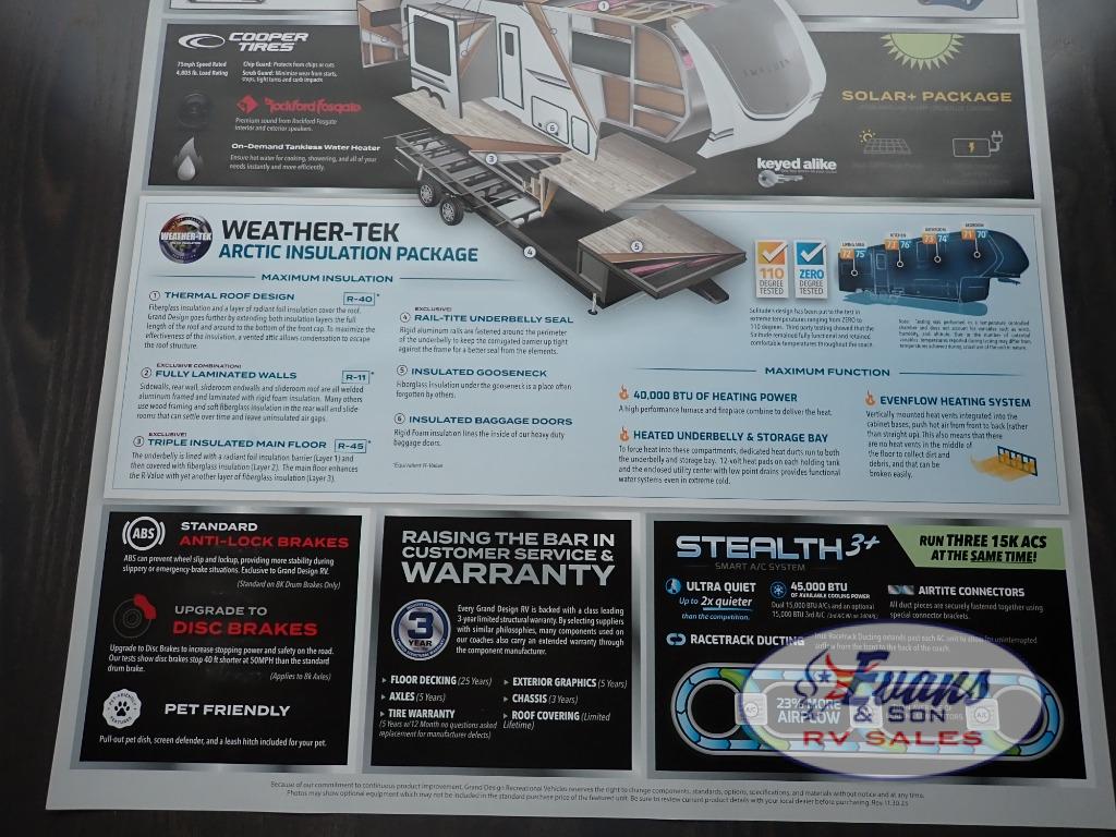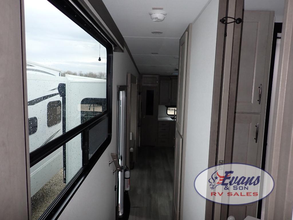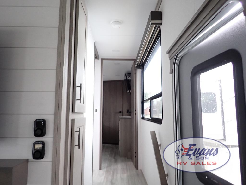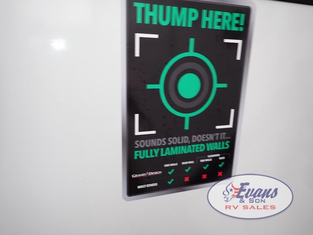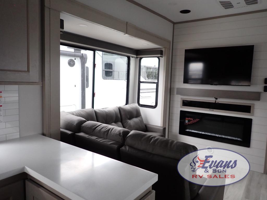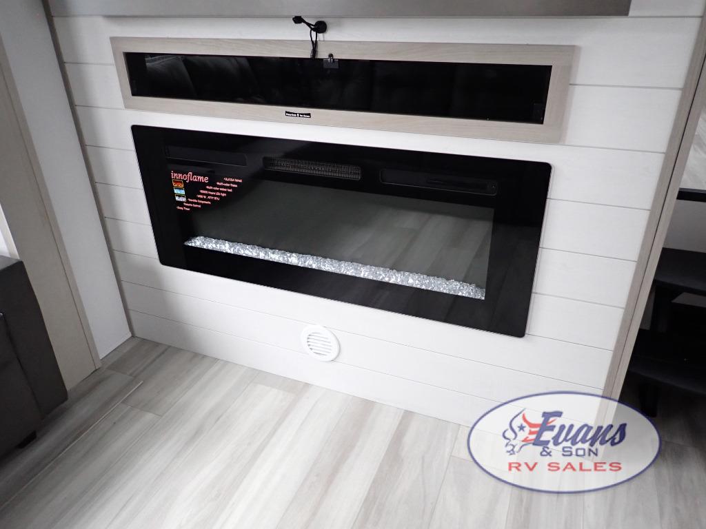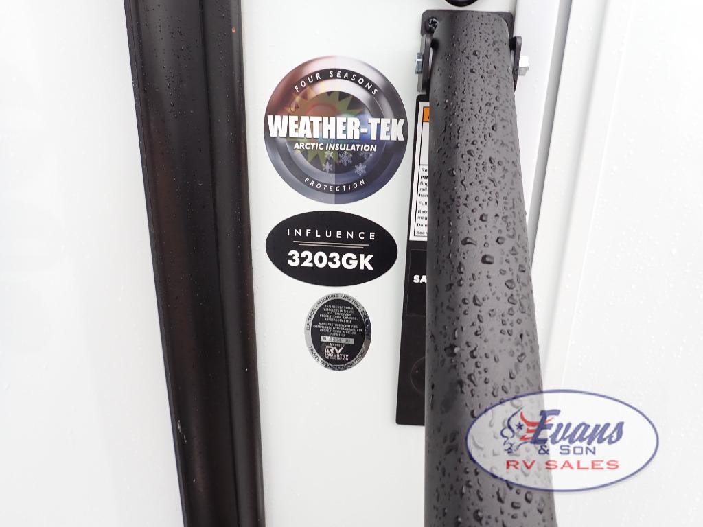 Any Grand Design Influence fifth wheel features five-sided aluminum cage construction with a walk-on roof and a fully enclosed underbelly with heated tanks and storage for all weather camping. For peace of mind, the MORryde CRE3000 Suspension system will provide safe and smooth towing, and the 101" widebody construction offers all the room you need and that is before multiple slides are fully engaged. You will appreciate the Keyed-Alike locks, slam-latch baggage doors with magnetic door catches, exterior security light, and SolidStep entry steps. On the inside, Congoleum flooring, premium roller shades for privacy, a hallway handrail for safety, and nightstands with USB ports to keep all of your electronics fully charged. You will also love the On Demand tankless water heater when showering, plus the added heat and ambiance from an electric fireplace, and so much more!