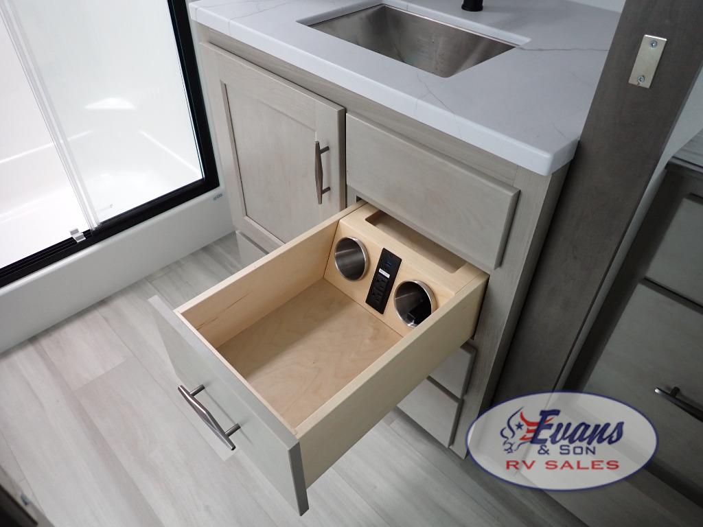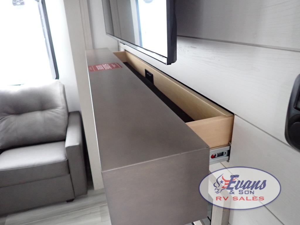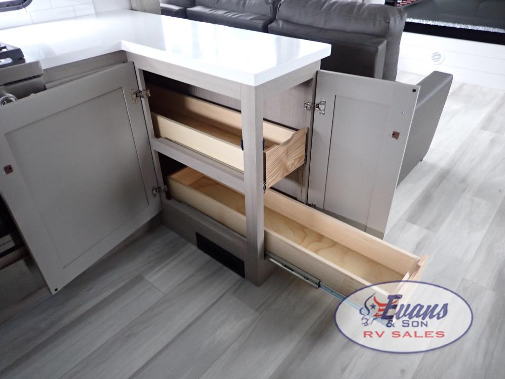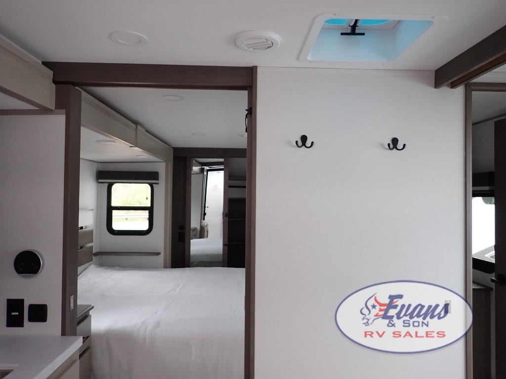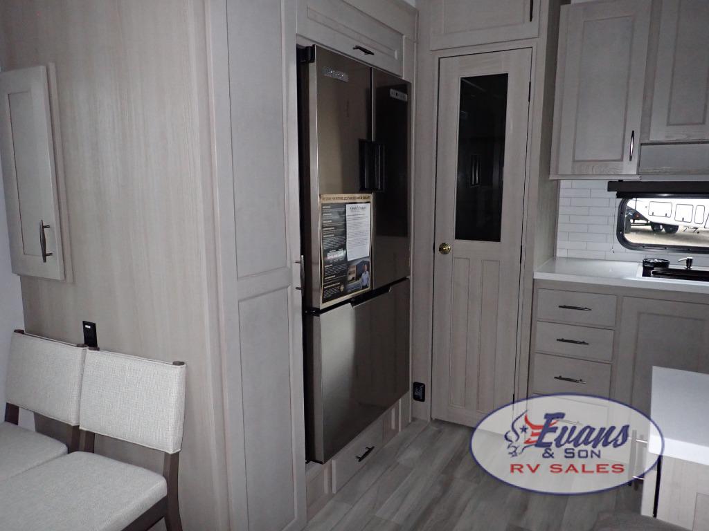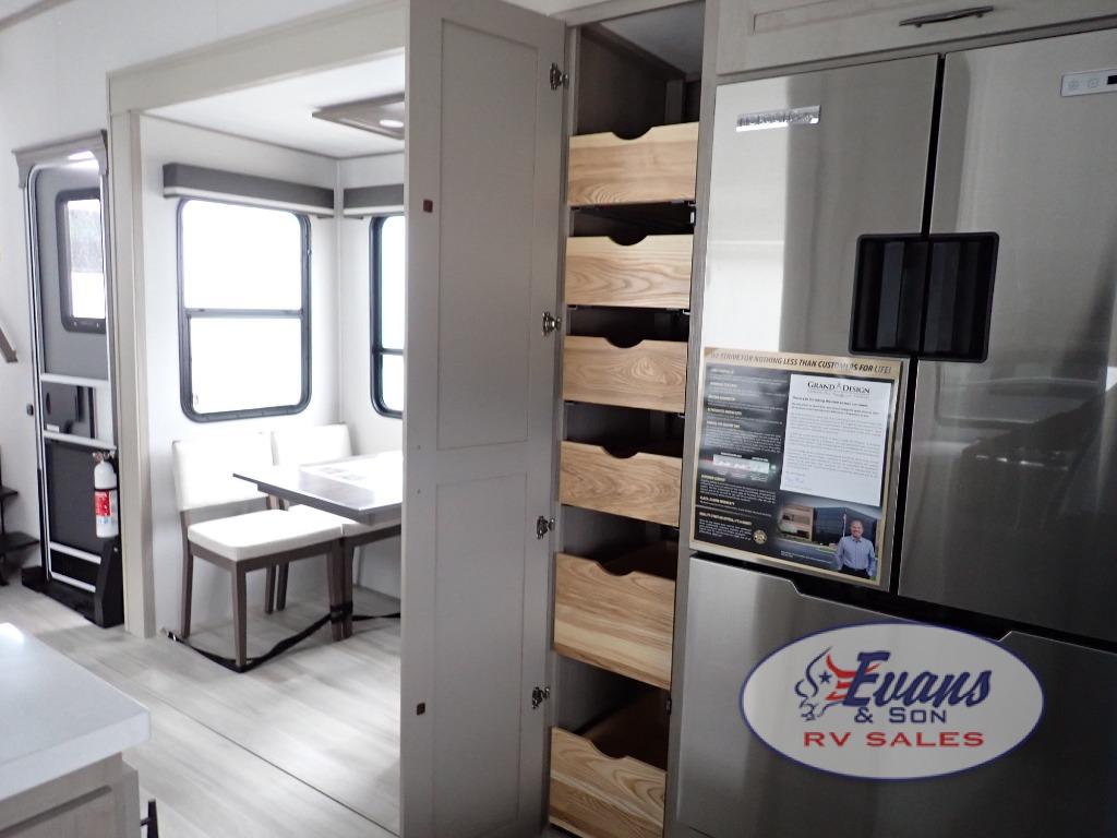 Any Grand Design Influence fifth wheel features five-sided aluminum cage construction with a walk-on roof and a fully enclosed underbelly with heated tanks and storage for all weather camping. For peace of mind, the MORryde CRE3000 Suspension system will provide safe and smooth towing, and the 101" widebody construction offers all the room you need and that is before multiple slides are fully engaged. You will appreciate the Keyed-Alike locks, slam-latch baggage doors with magnetic door catches, exterior security light, and SolidStep entry steps. On the inside, Congoleum flooring, premium roller shades for privacy, a hallway handrail for safety, and nightstands with USB ports to keep all of your electronics fully charged. You will also love the On Demand tankless water heater when showering, plus the added heat and ambiance from an electric fireplace, and so much more!