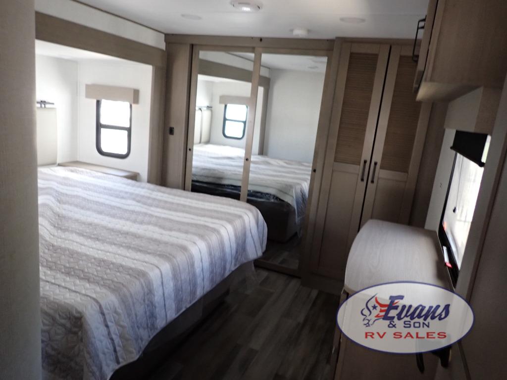 Optioned with: 2nd A/C 13500 BTU, King Bed, and Swivel Table with 2 Chairs and Bench/Storage Ottoman