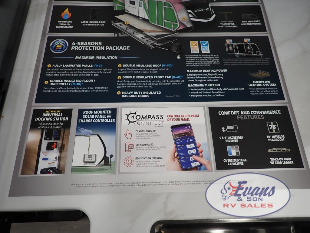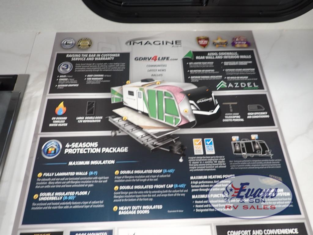 Aim for new destinations in one of these Grand Design Imagine AIM travel trailers! They are constructed to a superior standard with the 4-Seasons Protection Package that features a heated and enclosed underbelly with suspended tanks, a moisture barrier floor enclosure, a double insulated roof and front wall, and more. There is backup camera prep outside, along with a universal docking station, and a power tongue jack. You are sure to feel at home with residential cabinetry, premium window treatments, residential countertops, and a spacious walk-in shower to name a few comforts. The on-demand tankless water heater is a feature you won't want to camp without and the hi-definition LED TV will ensure you'll never go bored on rainy days. Each model also comes with four AIM packages; the Peace of Mind Package, The Ultimate Power Package, The 4-Season Protection Package, and the Solar Package!