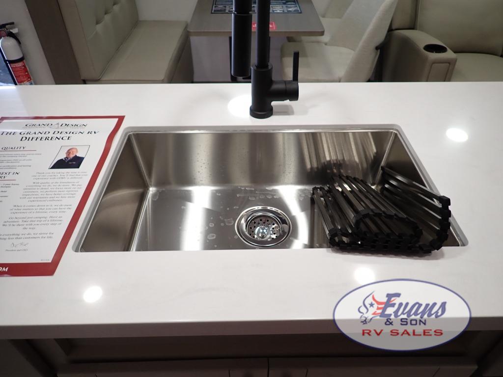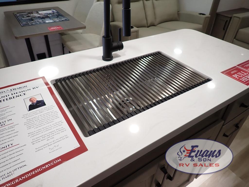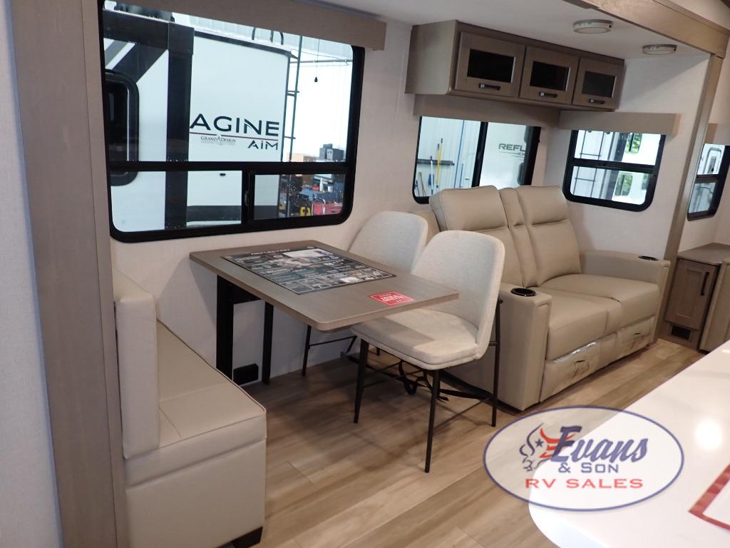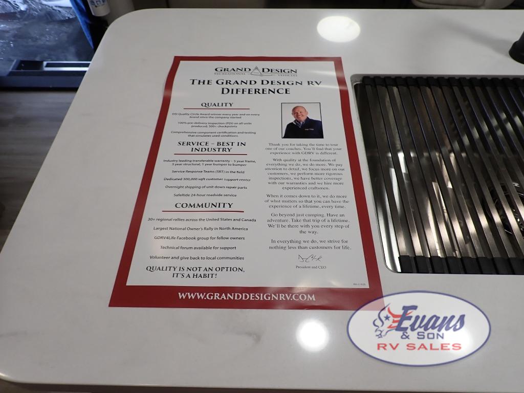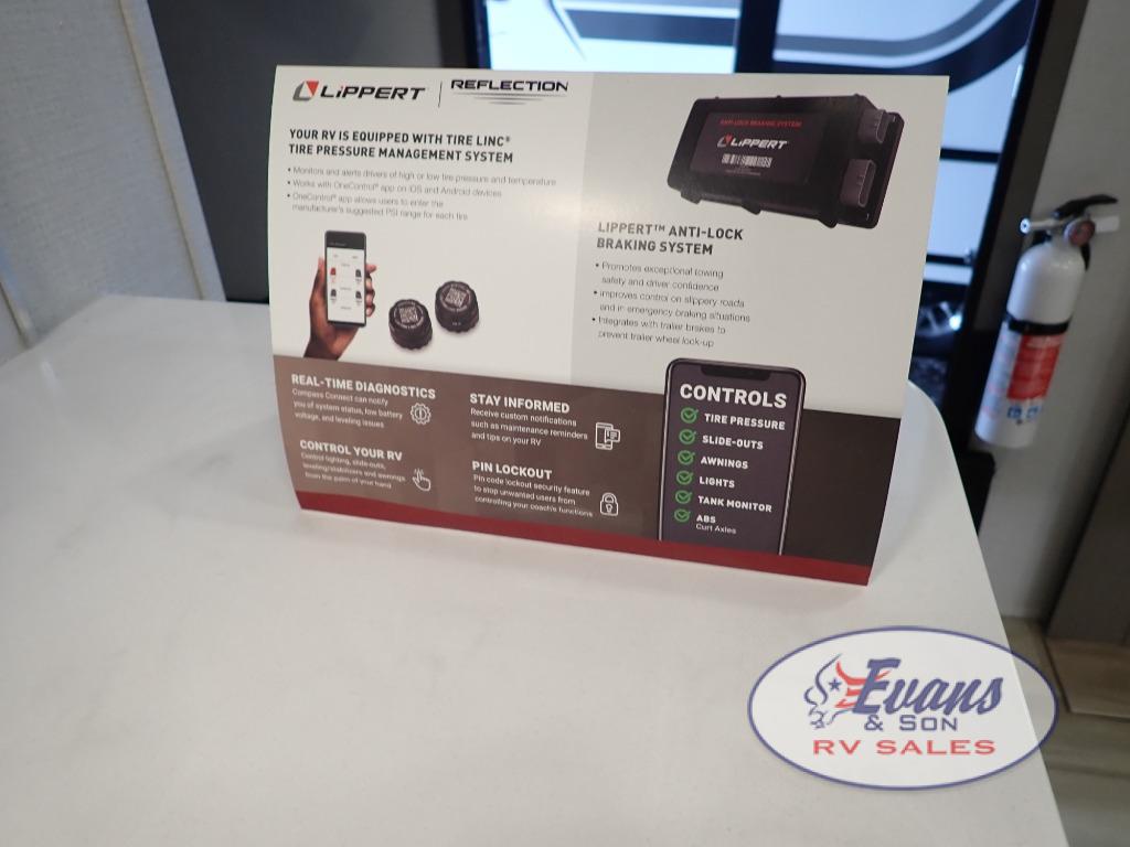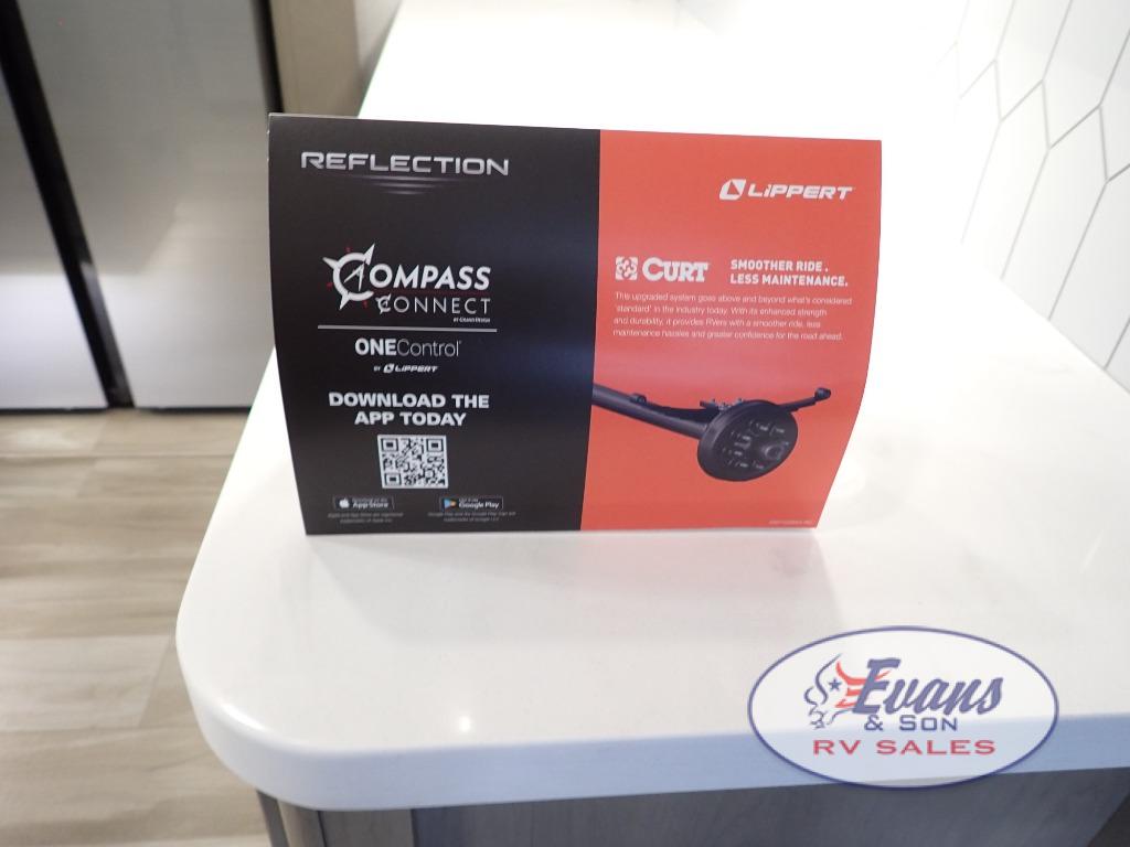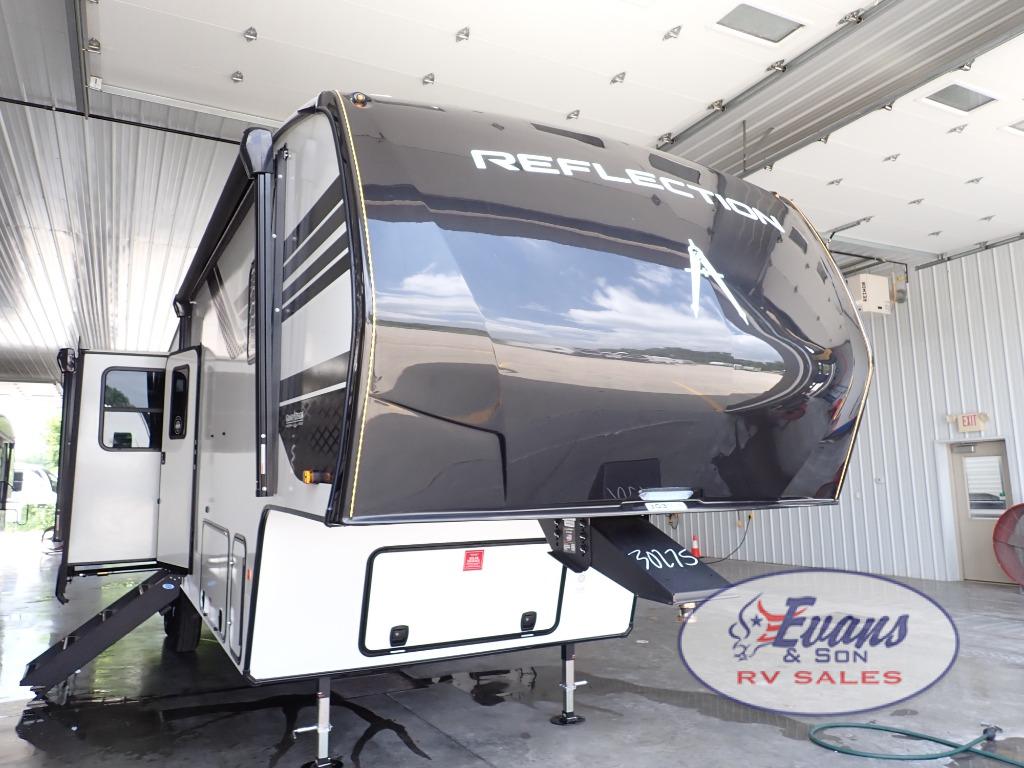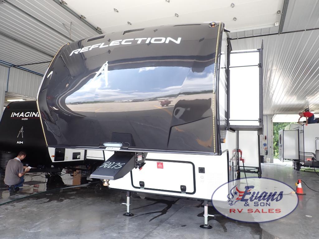 With any Reflection fifth wheel by Grand Design, you will have a solar panel for off-grid camping and a 60 amp charge controller and inverter prep, a Universal All-In-One docking station, unobstructed pass-through storage, and Goodyear Endurance tires. Each is constructed of gel coat exterior sidewalls, residential 5" truss rafters, walk-on roof decking, a fiberglass and radiant foil roof and front cap insulation plus laminated aluminum framed side walls, roof and end walls in slide rooms. Head inside to enjoy residential hardwood cabinet doors, premium Congoleum flooring, a spacious shower with a glass door, and many more comforts!