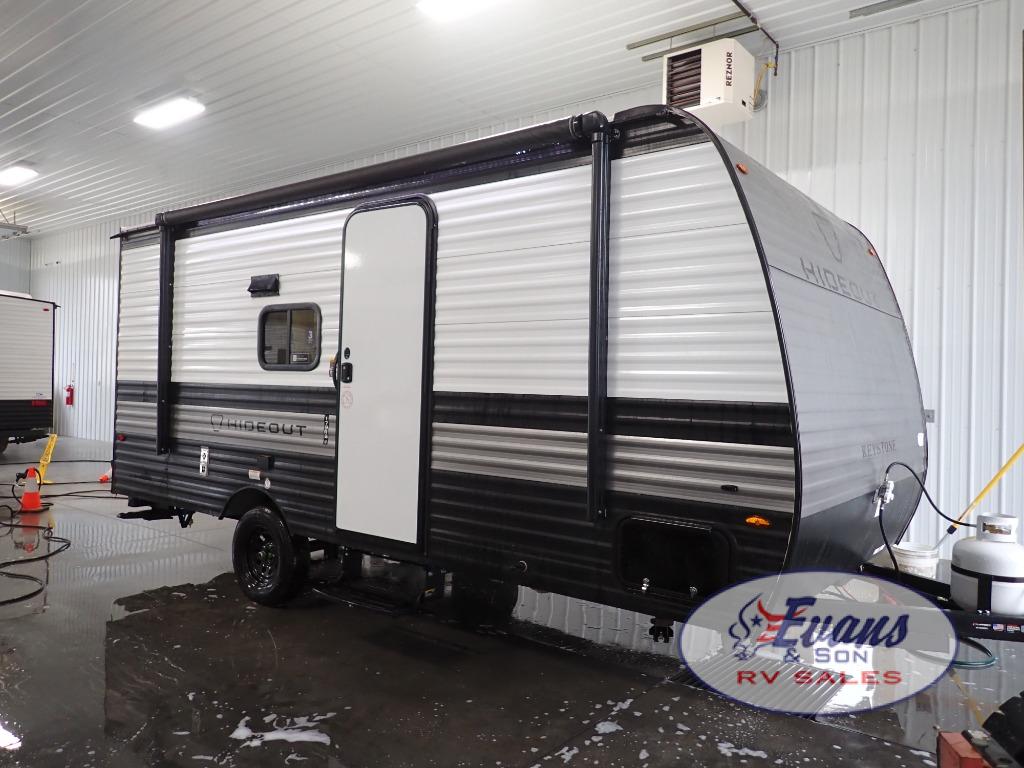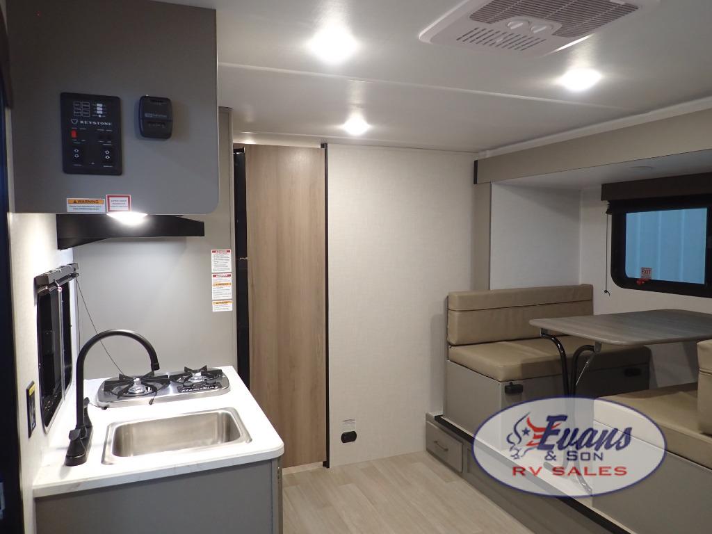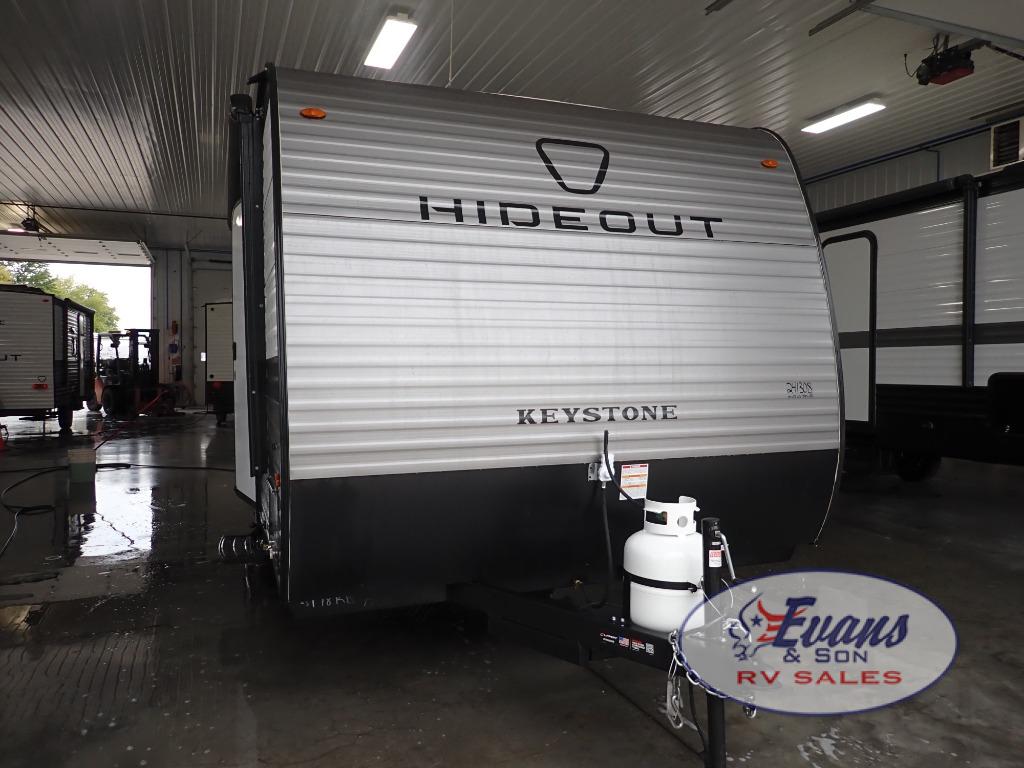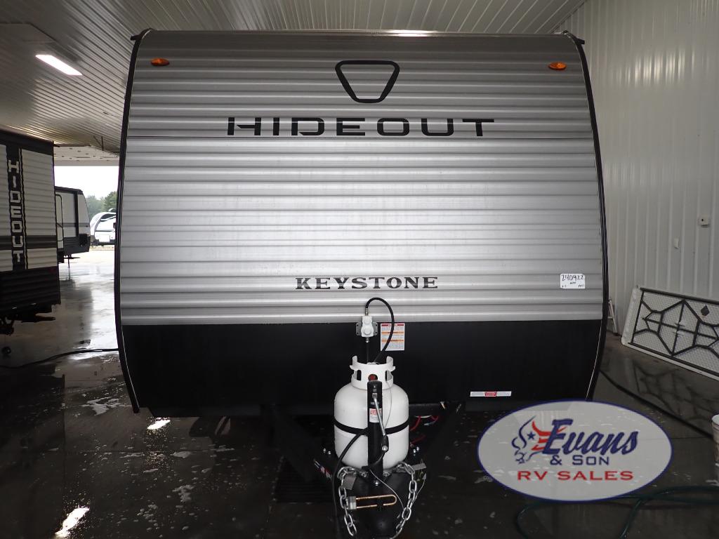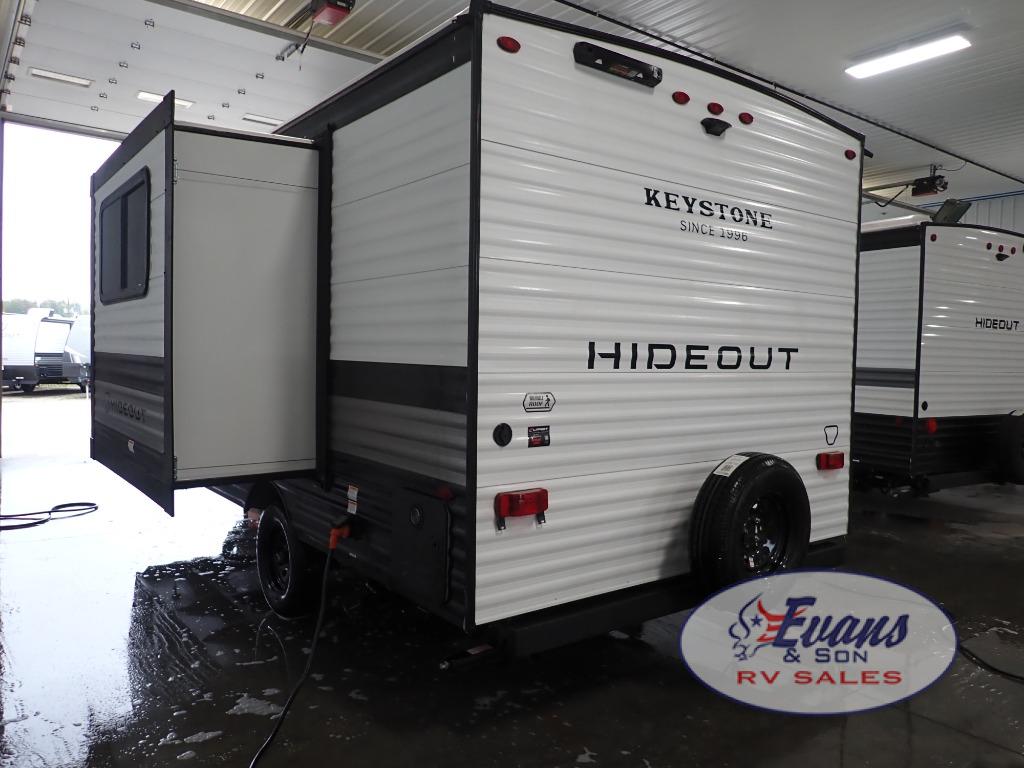 With any Hideout Mini travel trailer by Keystone, you will enjoy lightweight towing thanks to their single-axle! The AlphaPly TPO roof membrane is ultra durable, and the power awning will provide protection from the sun as you relax in your camp chairs outside. Each model includes blackout night shades, LED lighting, plus many more interior comforts. There is also a roof A/C and 20K BTU furnace to keep you comfortable, plus a tankless water heater for endless hot showers!