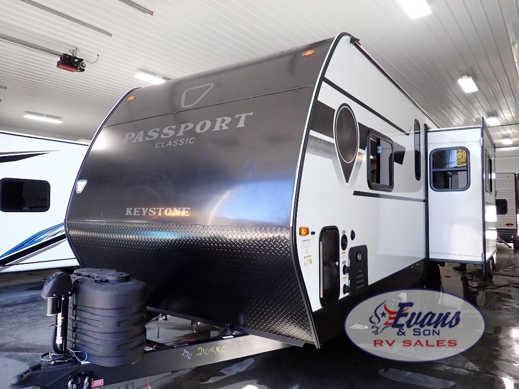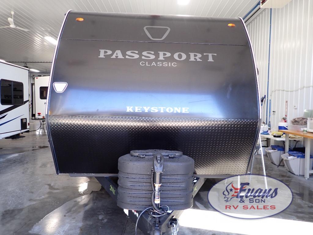 Comfort is found all throughout each one of these Keystone RV Passport Classic travel trailers! They are built with a one-piece polypropylene underbelly to protect your unit's vitals, and a seamless, laminated and gel-coated filon exterior that is sure to turn heads at the campsite. A fully walkable roof makes it easy to access when needed, and the leaf spring straight axles help provide smooth towing. The residential durable Beauflor vinyl flooring throughout and the seamless kitchen countertops will be easy to clean, and you can stay cool on a hot summer day with the A/C unit. Come find the Passport Classic that fits your needs best!