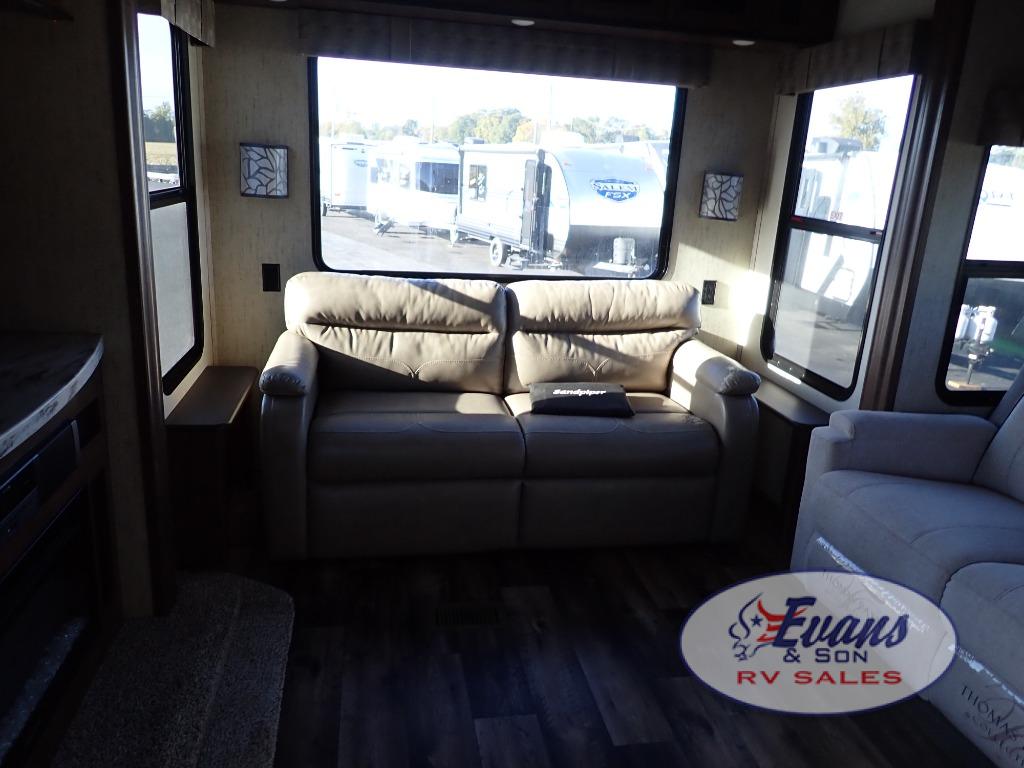 The professional details, outstanding quality, and elegant decor that have been incorporated into each of the Sandpiper fifth wheels by Forest River will absolutely amaze you! Extra large picture windows have been installed throughout the interior so that you can feel connected to the beautiful outdoor scenery from anywhere inside the Sandpiper, and the recessed residential LED lighting will shine brightly and efficiently to illuminate the interior once the day's light has faded. With the 84" ceiling, stainless steel appliances, and residential stain-resistant carpet, you will be happy and proud to showcase your Sandpiper to all of your family and friends.