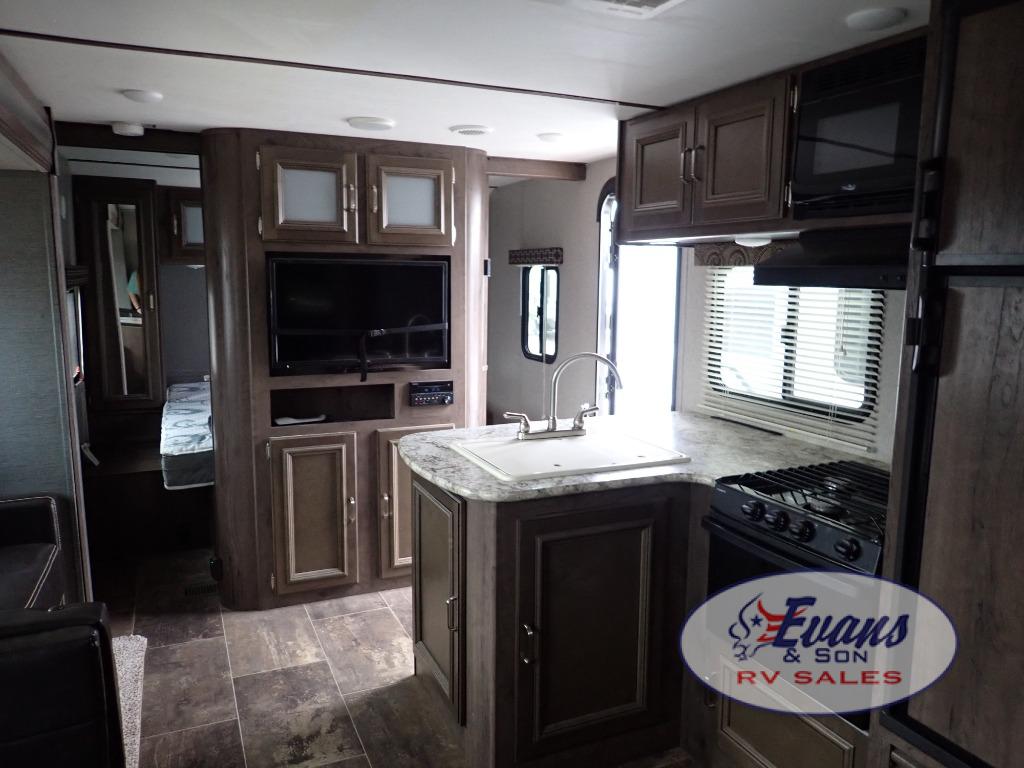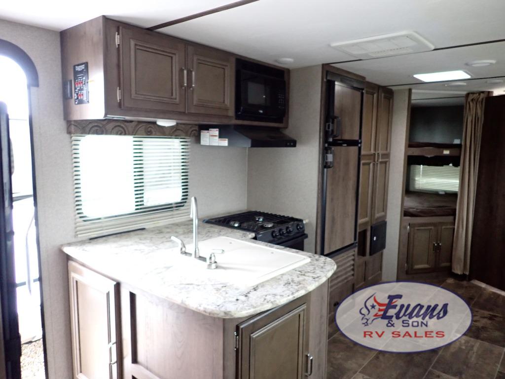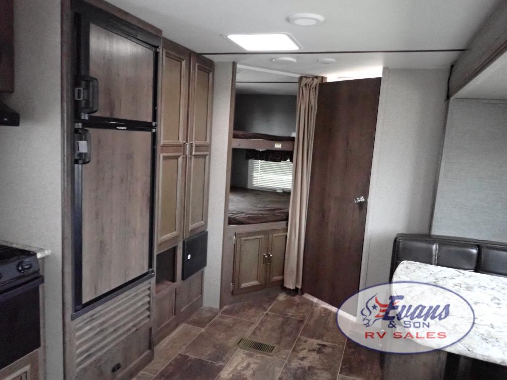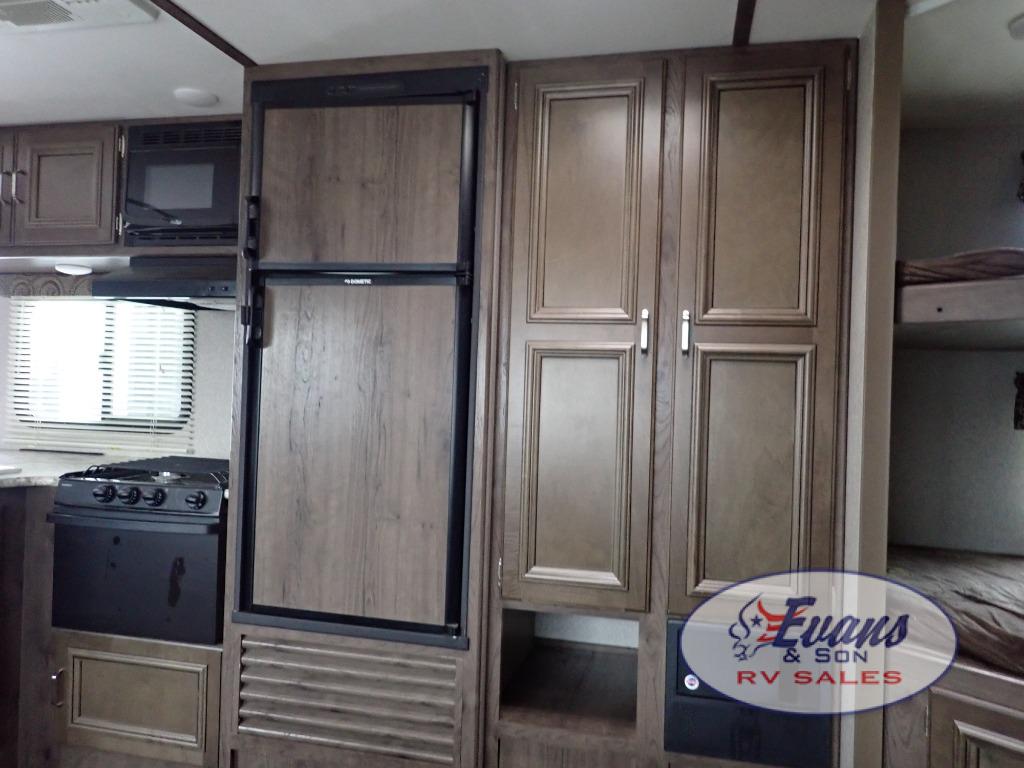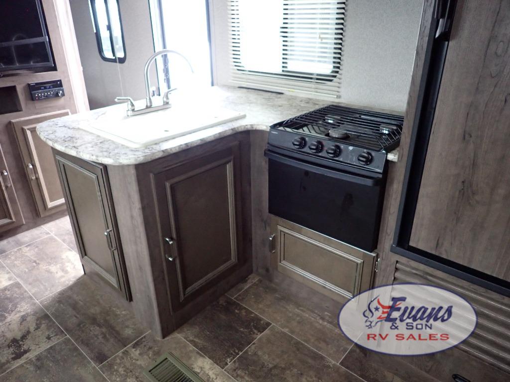 Envisioning your kids playing outside with their friends while you cook meals on the outdoor kitchen that you have always wanted when camping? This Passport 2670BH Grand Touring travel trailer might be the one that fits your cooking preference and your kids' sleeping arrangements. You can even make meals indoors with all the kitchen appliances provided. You will find your own private bedroom on one side of the trailer, and a conveniently located full bathroom next to the rear double size bunk beds. There is storage in the pantry, wardrobes, and overhead cabinets, as well as outside in the pass-through compartment.