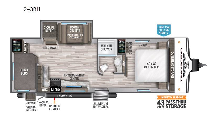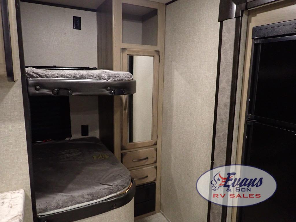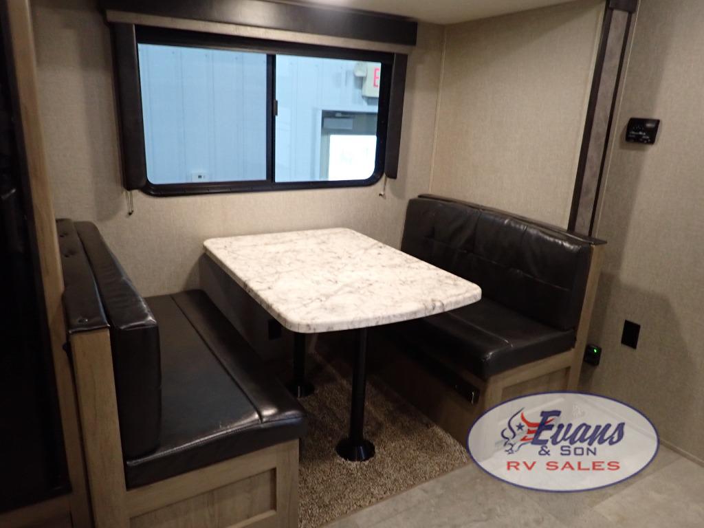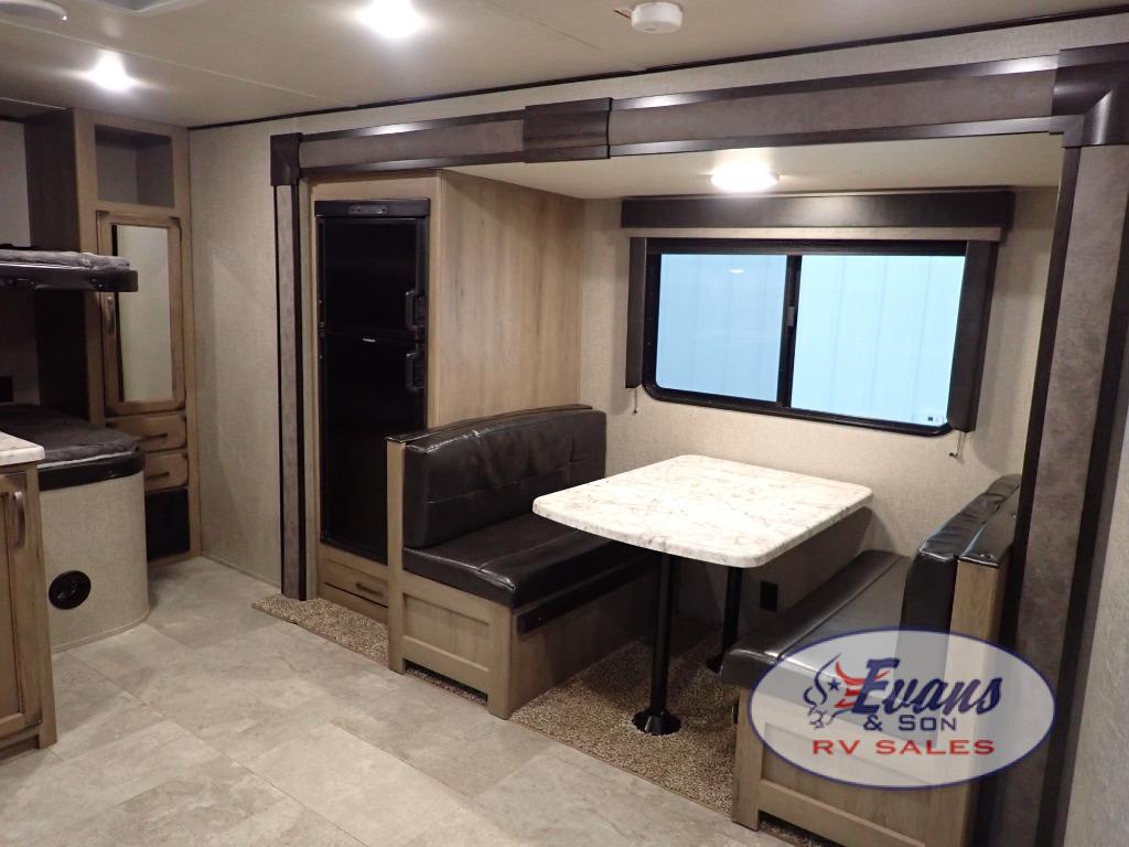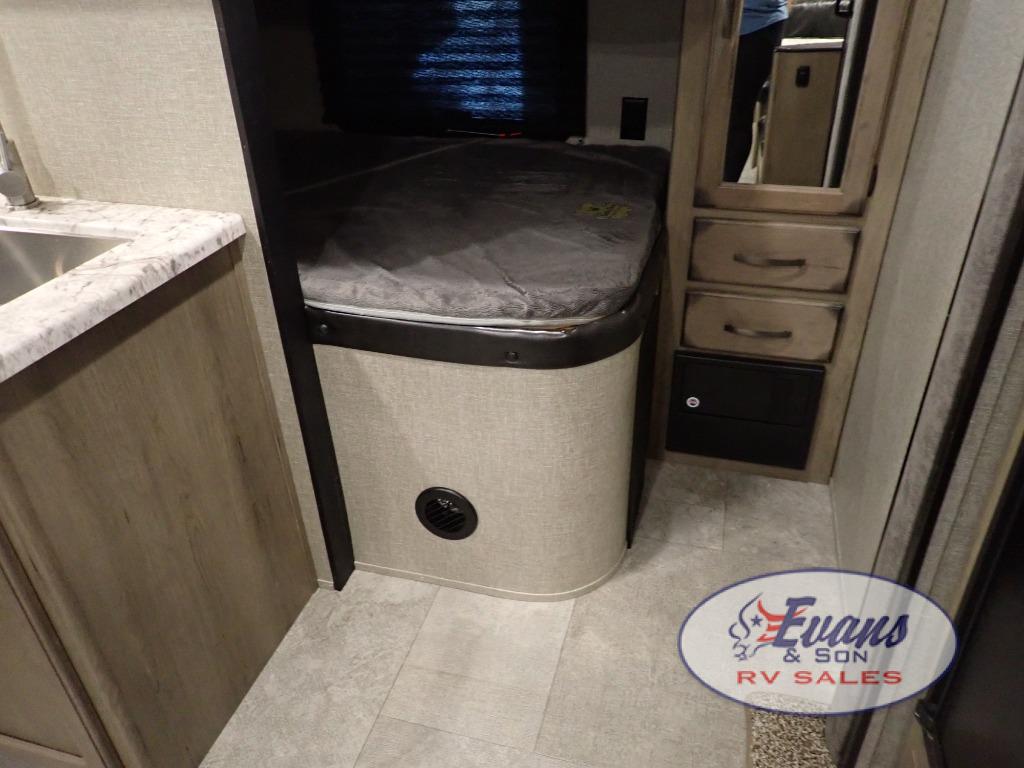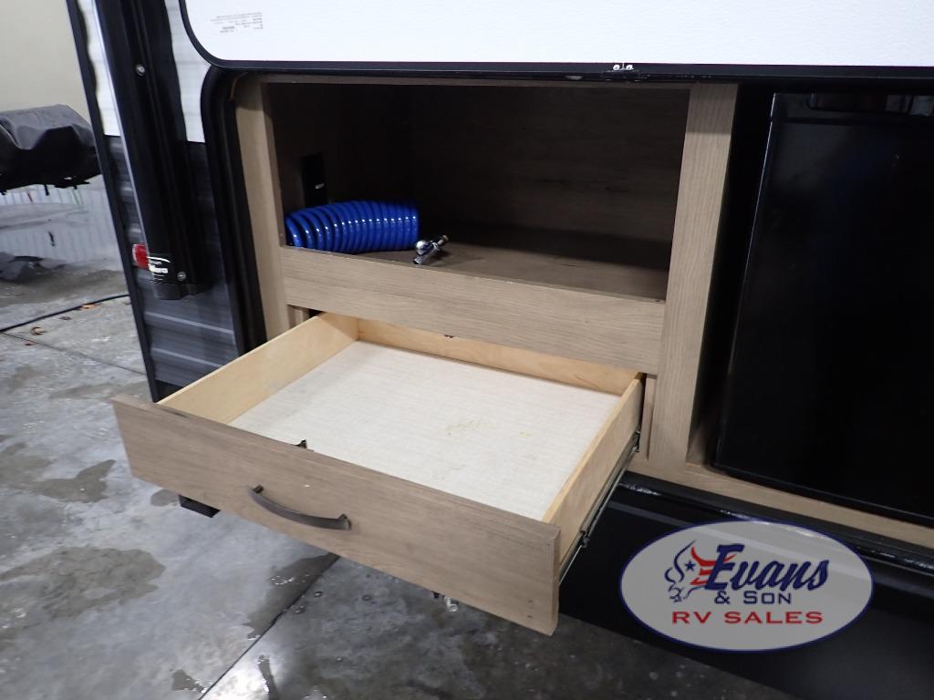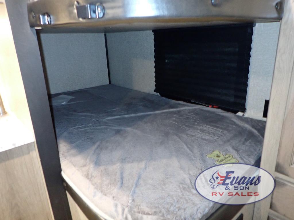 Looking for a set of bunk beds for the kids, and a private bedroom for yourselves? You can probably imagine all of the fun you will have with your family at state parks, national parks, and traveling to see family. From having your own bedding for everyone, plus the booth dinette that offers more than just a dining space, to having your own full bathroom and a pet drawer for your best friend, you will love everything about this trailer. Along the exterior you will find a pull-out drawer, and pass-through storage with 43 cu. ft. to load your larger outdoor camping items and such. This is the one!